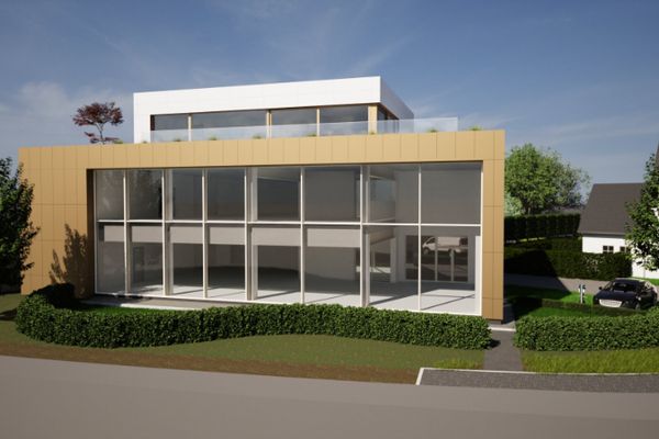 Projectgrond van 20a21 voor een handelspand op 2 verdiepingen met werkplaats op het gelijkvloers van samen 800m² + een dakappartement / kantoren van 200m².